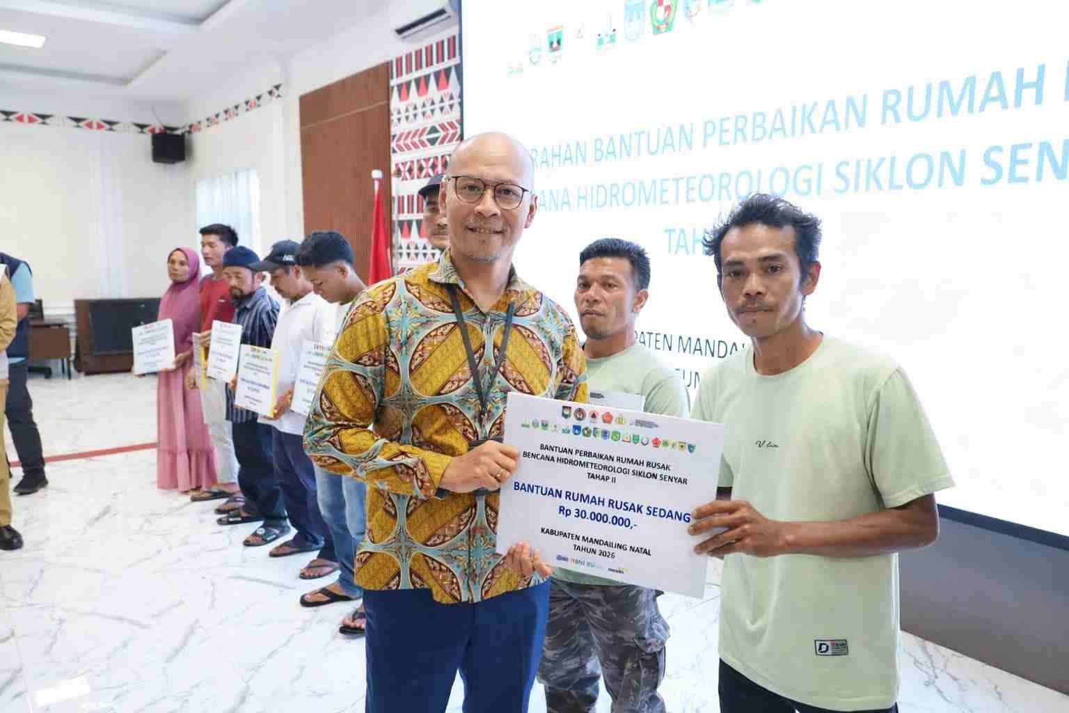 Pemkab Madina dan BRI Panyabungan Serahkan Bantuan Perbaikan Rumah Terdampak Bencana